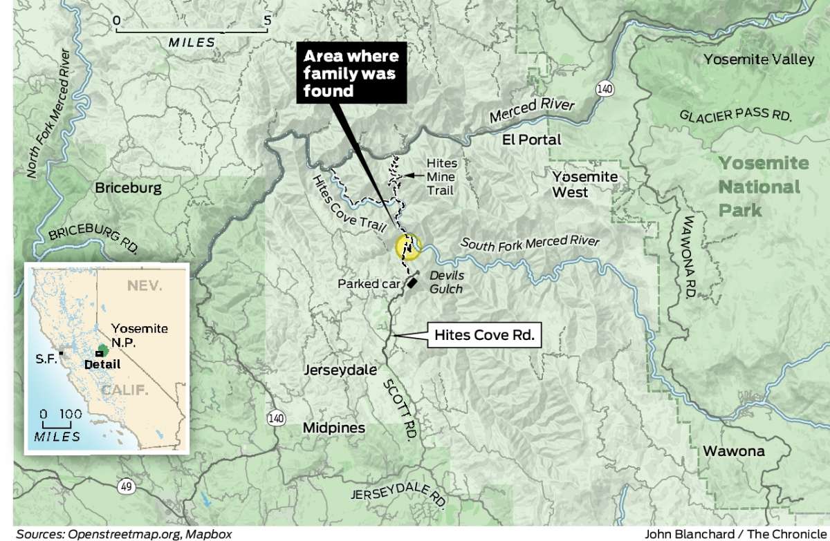 15 along the three-mile long Savage-Lundy Trail in the forest in an area known as Devils Gulch near the community of Hites Cove. The Savage Lundy Trail is a 28-mile long trail and is the most difficult trail in the area near the south fork of the Merced River and the Devils Gulch. The family was last seen on August 15 while hiking in Hites Gulch which is located three miles northwest of Devils Gulch Valley.